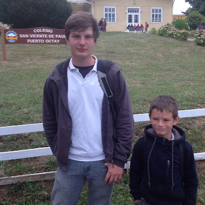 Samuel will be attending the PreUniversity Pedro de Valdivia in Osorno to study for the PSU which is the Chilean equivalent of the SAT. And then Thomas and Andrew at the Colegio San Vicente. This is just a school not a college that goes from K-4 to 12th. We decided to end our homeschooling days as living in Chile is just not conducive to that lifestyle and we have access to a free catholic school. In South Carolina, we were part of 2 large and active homeschool co-ops. Now I have one little boy all by himself and no support group with all its activities. And Thomas needs to learn Spanish and make friends here so we decided to put him in while Andrew was still attending. Having big brother upstairs will make the transition easier, we hope! BTW, Thomas speaks little to no spanish so it will be interesting to see how he gets on. And with his dyslexia he can't read english so the special ed teacher will have an interesting challenge to teach a little boy who speaks english and can't read it to speak and read spanish. And I will post more about the Chilean school system as far as I know about it, anyway!