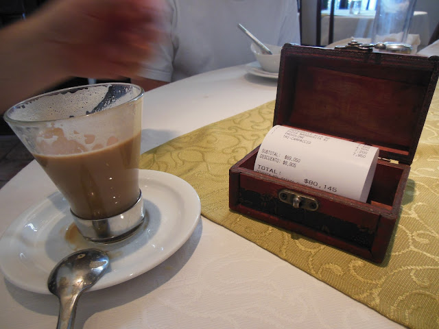 The bill comes in a little box - our meal with drinks, wine, coffee, and desert was $160. Not too bad for the top quality of the food and for 5 people.