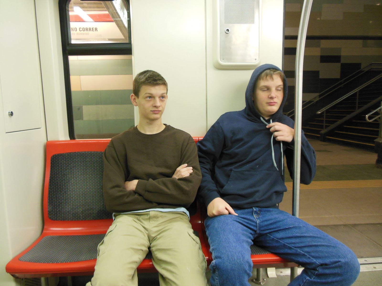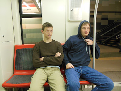 Here are Samuel & Andrew on their first subway ride trying to act like old pros.