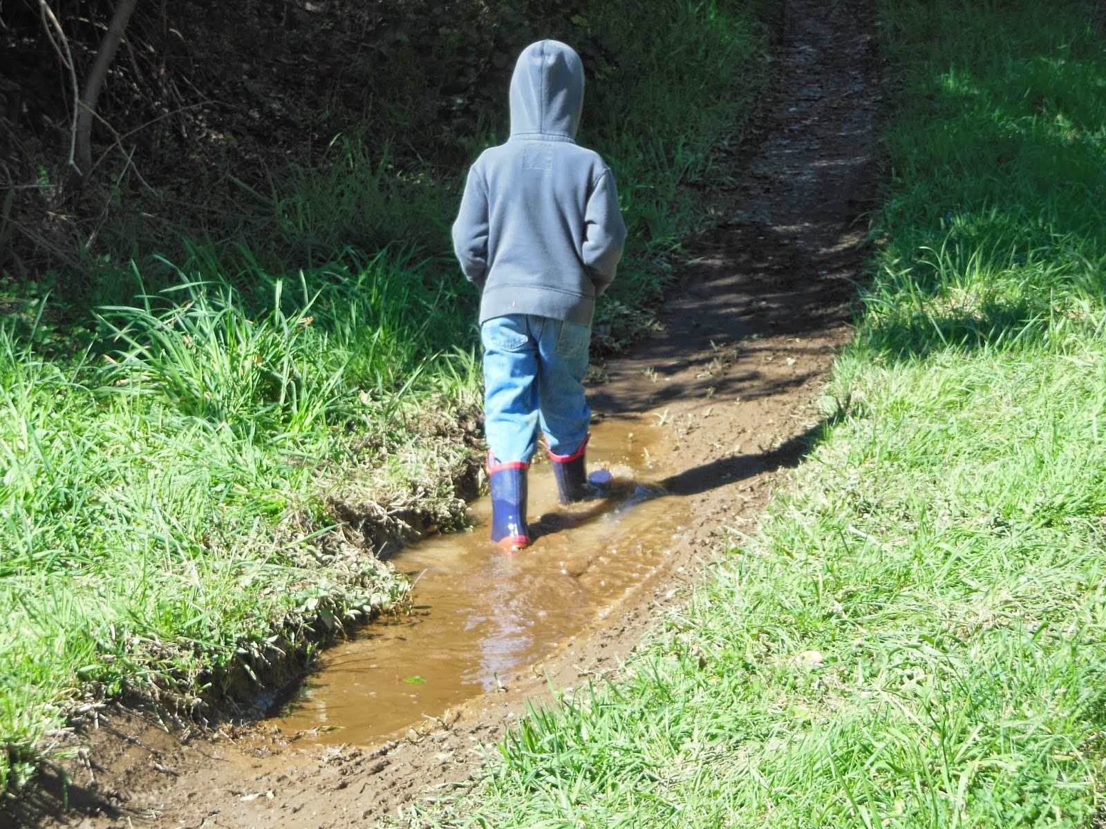 Here is Thomas creating a "little boy dam" in the road ditch. The water runs this fast all winter long here in the ditches. It is more like a creek than a ditch and the water is coooooolllllllldddd.