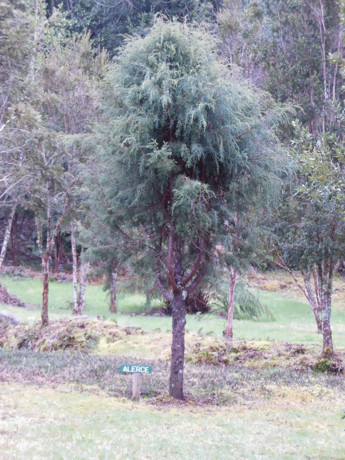 1. I almost got arrested at the park when the park ranger was giving us a tour of the gardens surrounding the ranger station. Since there were no Alerce trees in close walking distance, I asked him if there was a "little Alerce Tree". The ranger was kind enough to show us a little tree (seen above). I thought it looked a lot like a Cedar tree so I picked a little sprig from the tip of one of the small branches........ The ranger saw me do it as I was only 1 foot away and said "don't do that again"! OOOOOOPs international incident. As I was rubbing the sprig between my fingers to smell the sap he explained it took 40 years for that sprig to grow.