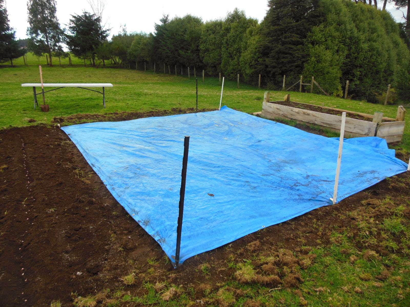 Spring has sprung and we are making our first major attempt to do some vegetable gardening. Last summer, Jim built a raised garden bed for me about 10 x 3. This was great for some herbs and stuff , most of which the slugs ate, but this year we wanted to go for something bigger that would help make a dent in our food budget. We started in mid-August (like February for those in the northern hemisphere) turning over a 20 x 20 square of pasture with short grass that had been nibbled on by the sheep. The grass here does not seem to be as invasive as the crabgrass we had back in South Carolina. And the soil was deep, dark, and beautiful unlike the red hard clay soils of SC. The soil here is called andisol which is formed from volcanic ash and is very fertile. This is the reason Chile produces so much fruit & vegetables (on the shelves of your local grocery store in the US).