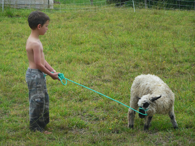 The walk is pretty nice - first we walk through a big field with grass taller than Thomas.